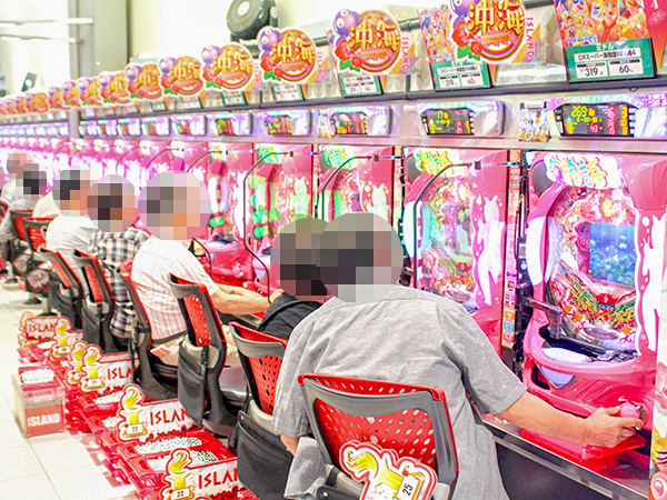 店内では貸し玉料金を問わず、様々な機種で遊技を心ゆくまで楽しむプレイヤーの姿が見られた。