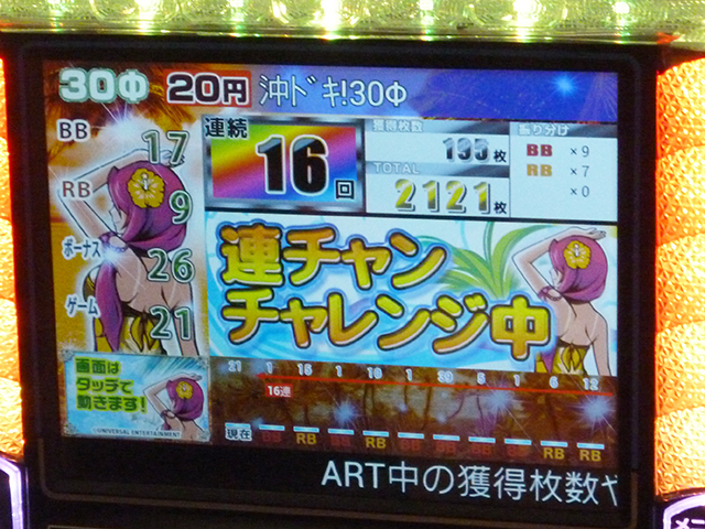 目立っており、16連チャン中の台も出現!