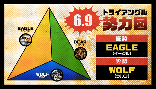 今回は、イーグル・ベアー・ウルフとも、大きな差は見られず、僅差での接戦だった。