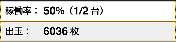 朝イチに満席となっていた『バジリスク~甲賀忍法帖~絆』は午後も高稼働。13名中8名が持ち玉で遊技を楽しんでおり、14時の時点で6000枚を超える出玉も確認した。