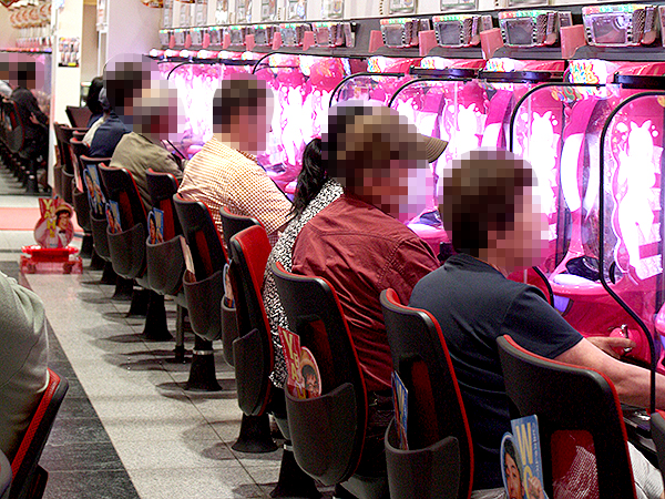 14時ごろの4円パチンココーナーを覗いてみると、「ぱちんこCR北斗の拳7 転生」や「ぱちんこCR真・北斗無双」が盛況。シマ全体に華やかな雰囲気が広がっていた。