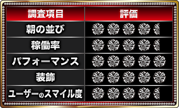また、高稼働となっている5円パチスロからも華やかな雰囲気が感じられ、貸し玉料金を問わずに満足感を得られるといった印象を受けた。