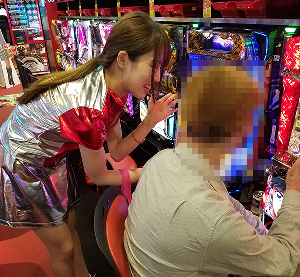 遊技を楽しんでいるパチンコ・パチスロファンのみなさんにキュートな笑顔でご挨拶( ´ ▽ ` )