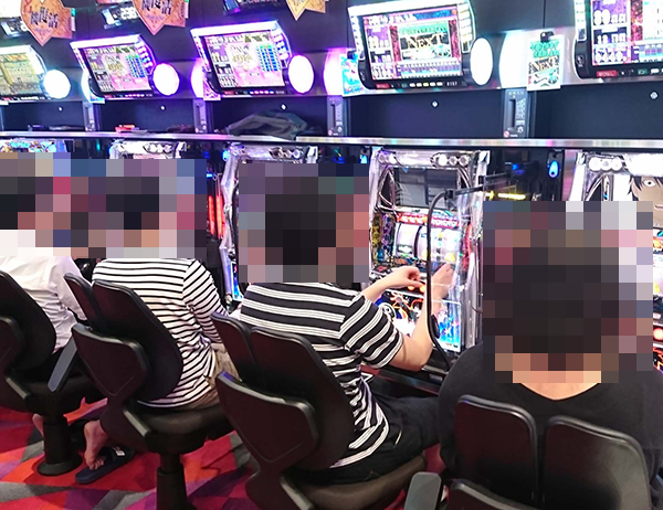 活気づくホール内において、目をひかれたのは満席となっている「パチスロ化物語」。