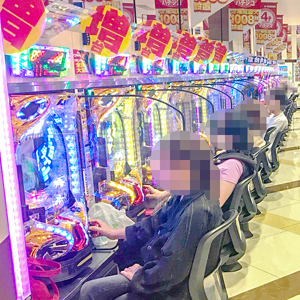 同店は西武池袋線・飯能駅から徒歩1分と、アクセスが抜群。取材時は既に多くのプレイヤーであふれており、パチンコ・パチスロを問わず楽しげな表情でいっぱいだった。