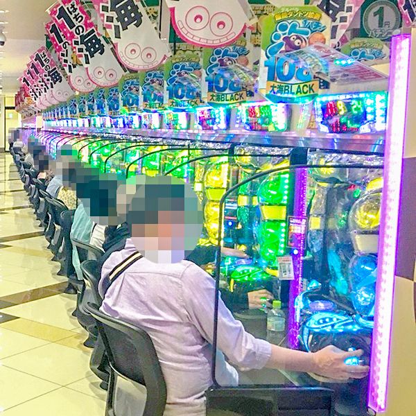 1円パチンコは「CR大海物語BLACK LIGHT」を中心に支持が厚い。至る所からにぎやかな雰囲気が感じられた。