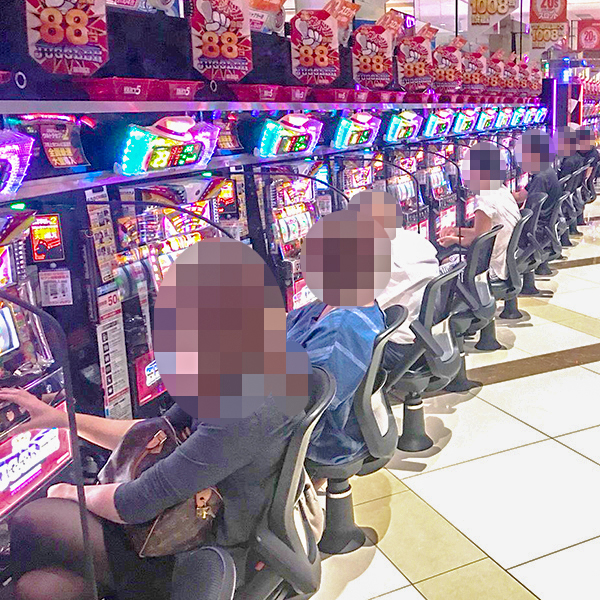 5円・2円パチスロも全体的に高稼働。各人、好きな機種を見つけ出し、心から楽しんでいるように見えた。