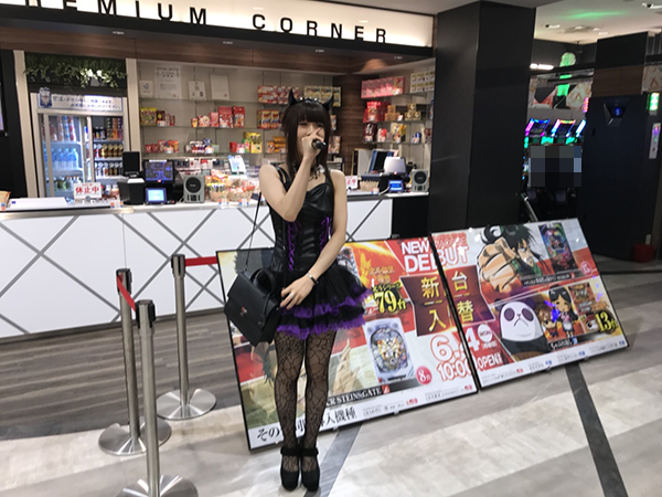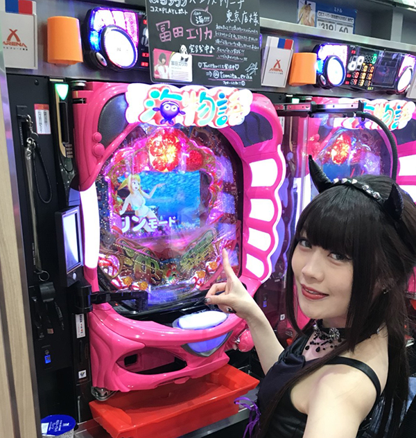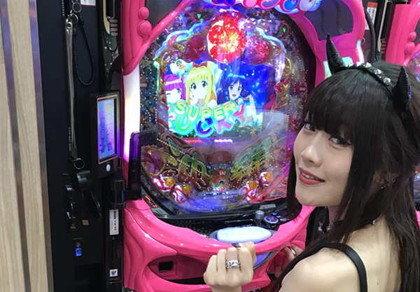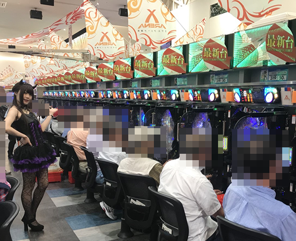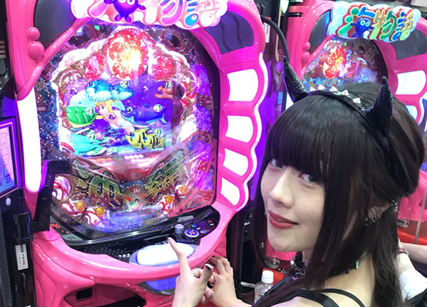 にぎやかな雰囲気に包まれているなかで、パチンココーナーへと向かうエリカちゃん。選んだ機種は…「CRスーパー海物語IN沖縄4」です(∩`ω´)=⊃