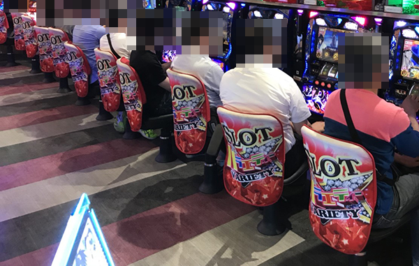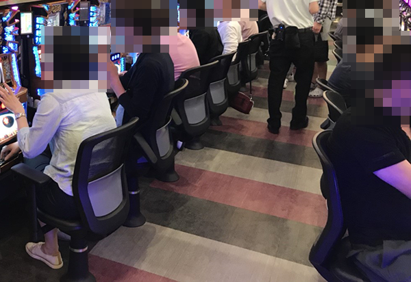 パチスロで遊技を楽しんでいるお客さまも多数。