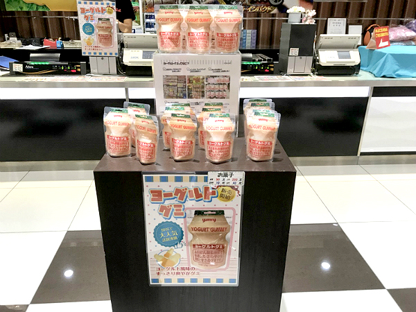 景品コーナーには、SNS等で話題のヨーグルトグミが登場。他にも日用品から生活雑貨まで、豊富なラインナップが用意されていた。