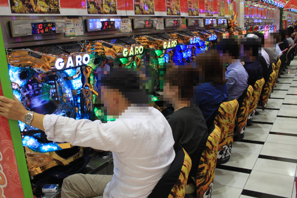4円パチンコも朝イチと変わらず「CR牙狼 金色になれ」が大盛況で、右打ちを楽しんでいるプレイヤーも複数いた。