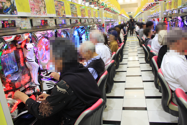 4円パチンコでは「CRサムライスピリッツ」「CR牙狼 金色になれ」「CRリング 運命の日」といった新台が人気。1円パチンコは羽根デジやミドルなどシリーズの様々なタイプが揃っている海物語コーナーが賑わっていた。