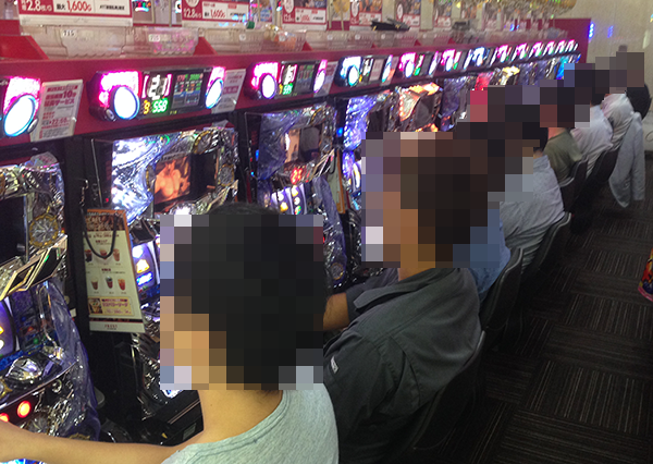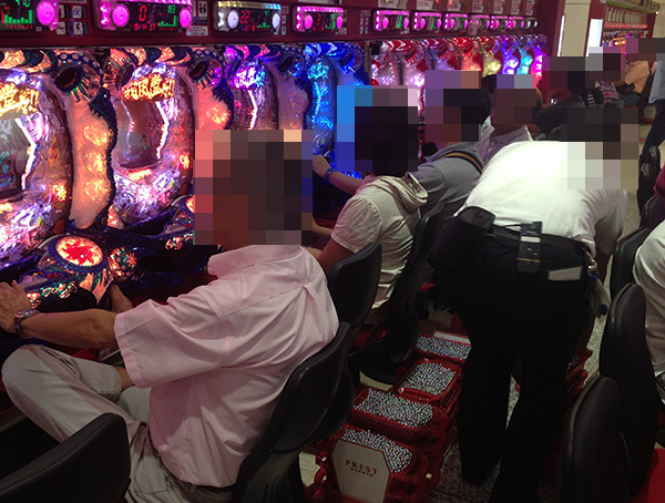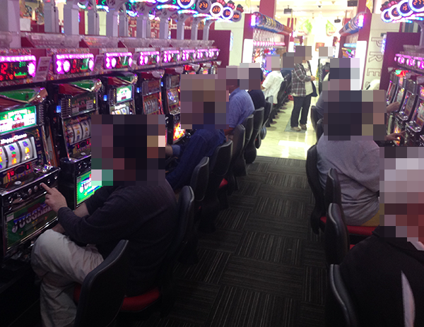 14時頃になると、4円パチンコからひときわ大きな盛り上がりが感じられた。