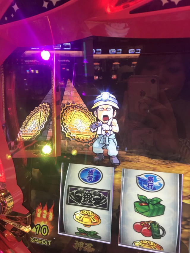 少しハマり始めていた台だったので心配だったのですが、よく対決や特訓に行くので様子を見つつ打っていたら、特訓中にピラミッド発掘!