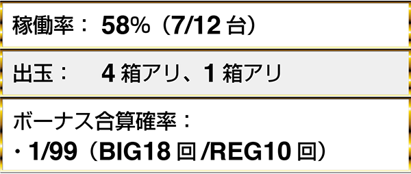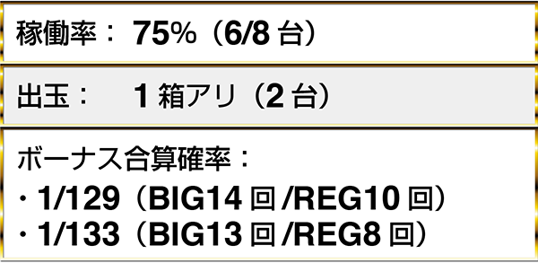 『ファンキージャグラー』や『ハッピージャグラーVⅡ』では、ボーナス合算確率が1/130を下回るデータも確認している。