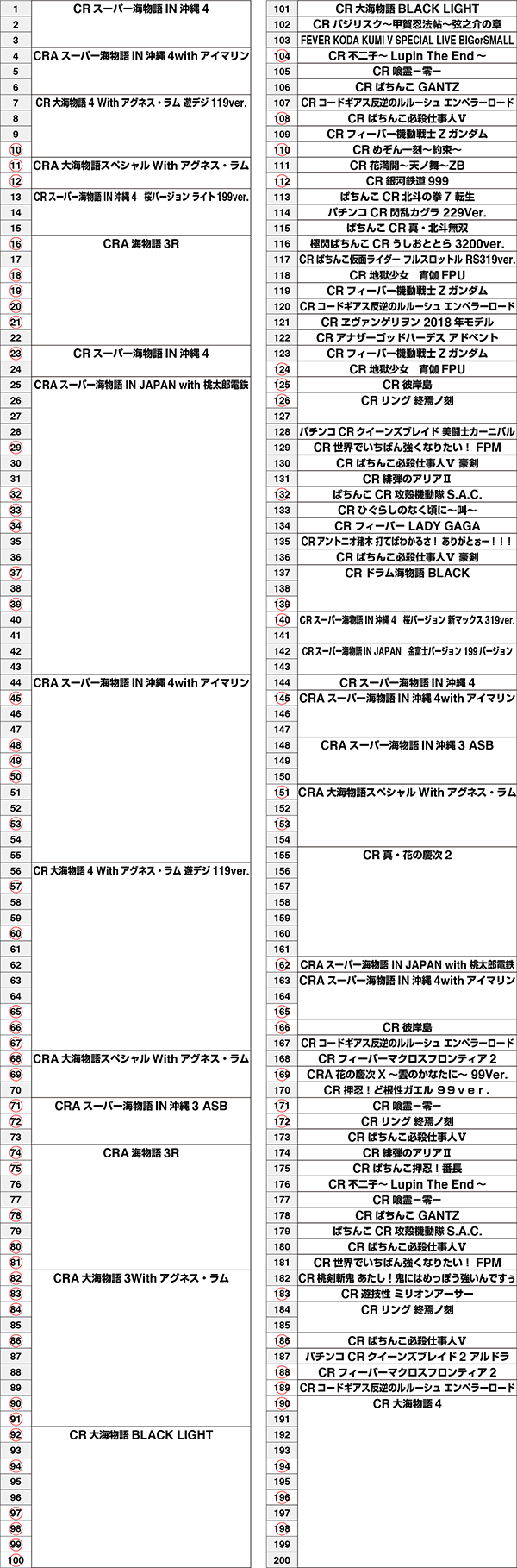 ※全台データはマルハンアプリを御覧ください。