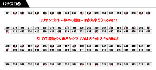 パチンコとパチスロの各シマにて赤丸台を確認ところで、取材は終了!
