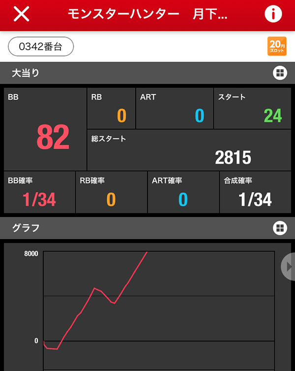 パチスロコーナーでは、「パチスロ モンスターハンター 月下雷鳴」が5台中3台が赤丸!
