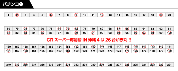 華やかなムードとなっていた「CRスーパー海物語IN沖縄4」では、60台中26台に赤丸!