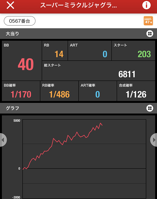 「スーパーミラクルジャグラー」や「アイムジャグラーEX-AE」など、さまざまな場所で笑顔を目撃している。