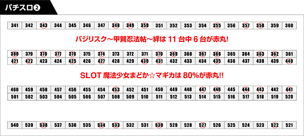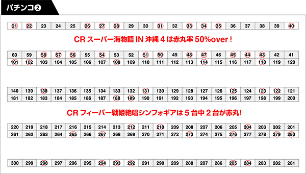 ここからは、ホール内でとびきり魅力的に移った台を紹介! 赤丸台のなかでも上位に映った赤丸台を要チェック!!