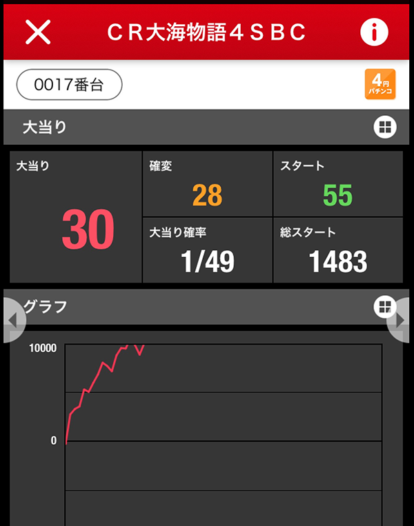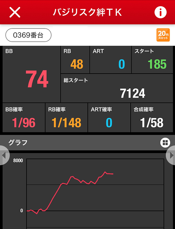 「バジリスク~甲賀忍法帖~絆」では、11台のうち6台を赤丸に認定!! プレイヤーが遊技を楽しめていたかは、グラフをみてもおわかりいただけるだろう。