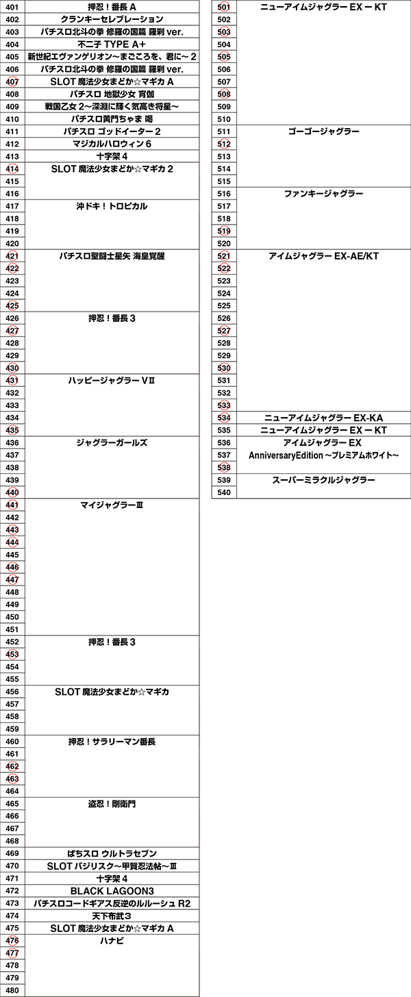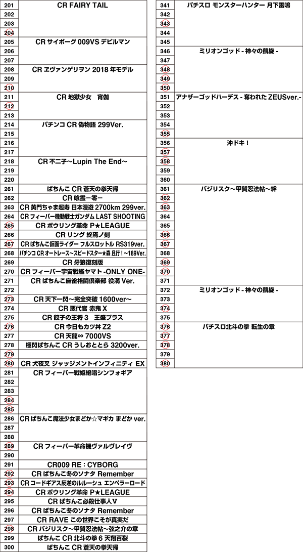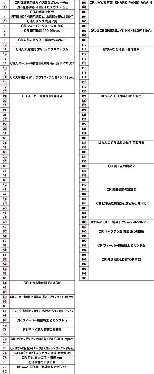 ほかにも、「ぱちんこCR北斗の拳7 転生」や「ぱちんこCR一騎当千 サバイバルソルジャー」など、丸をつけるべき台はさまざまな機種にあった。