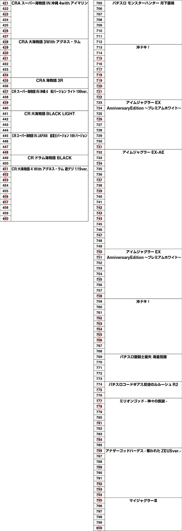 機種のスペックを問わずに、さまざまな機種支持を集めていた「マルハン柏店」。プレイヤーの活躍を楽しみつつ、次々と赤丸を書き込んだ1日となった。