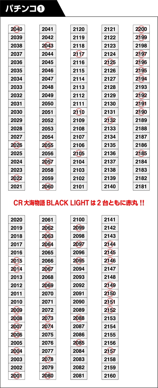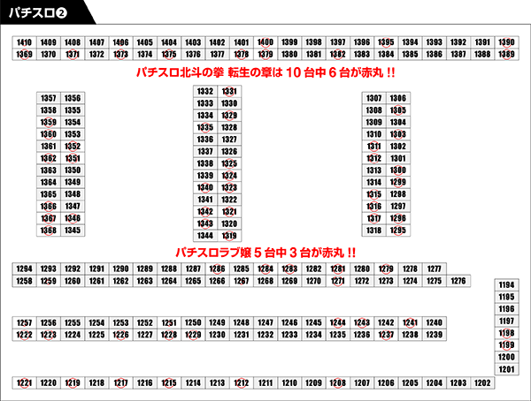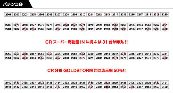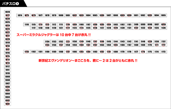 パチンコとパチスロの各シマをみていくと、赤丸をつけたくなるような台が満載!