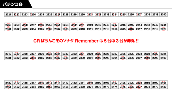 紹介したい台がたくさんあるなかで、とくに輝いてみえた台を厳選してお届け。キラキラと光ってみえた赤丸台をチェック!