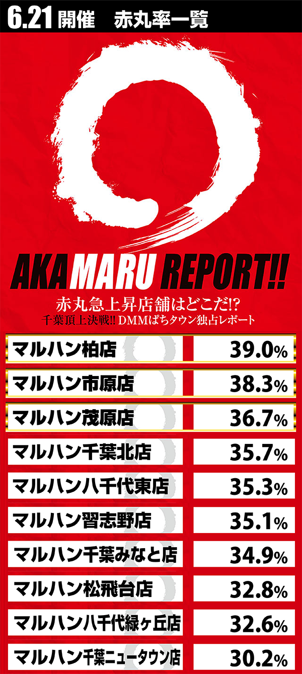 6月21日、「AKAMARU REPORT」をおこなうべく向かった先は「マルハン八千代緑が丘店」。