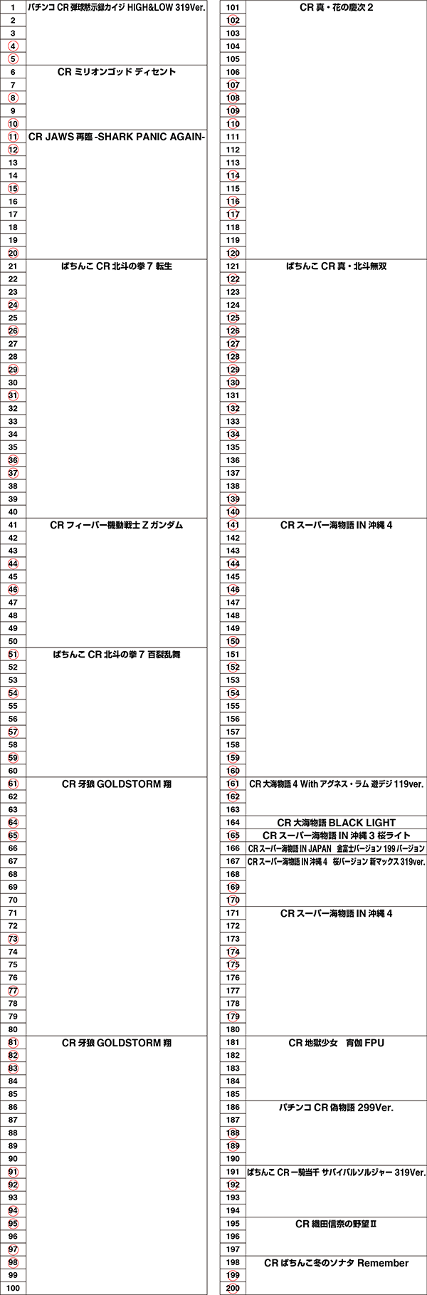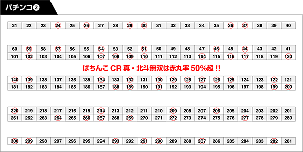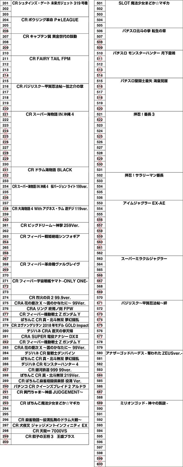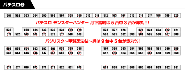 さまざまな機種が並ぶパチンコにも赤丸をつけるべき台は多数。