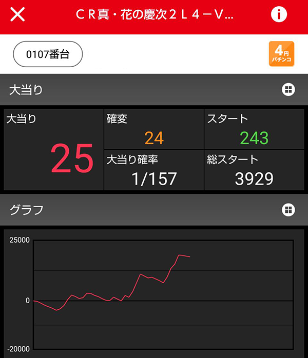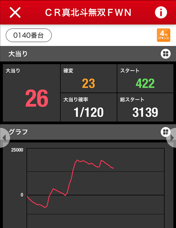 最新機種である「ぱちんこCR北斗の拳7 百裂乱舞」でも、ナイスな赤丸台と出会うことができた。