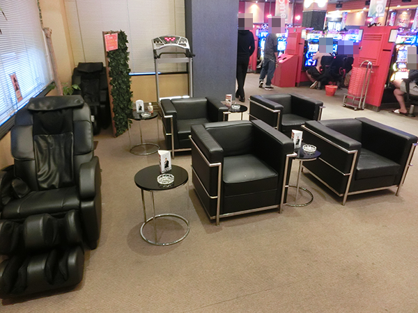 また、エクササイズマシンやマッサージチェアが完備されたレストスペースも魅力的。遊技の様子がみえる位置に設置されているため、空き台を待つ時間などに活用してみてもよいだろう。