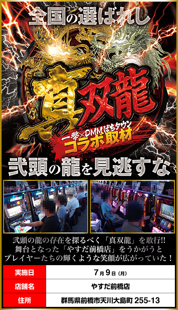 ホールに潜む龍の存在を探るべく、「やすだ前橋店」にて「真双龍」を敢行。