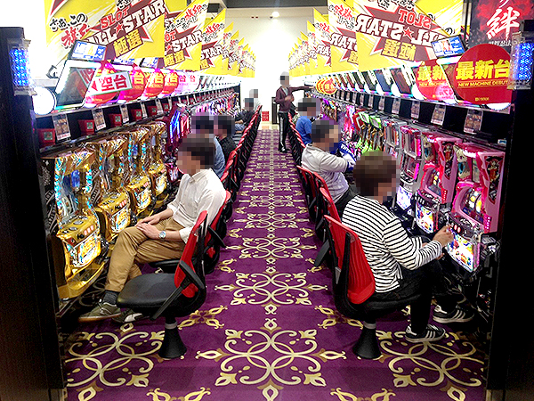 5円パチスロコーナーにおいては、老若男女問わず多くのプレイヤーでにぎわいをみせていた。