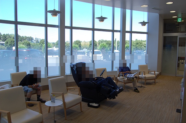 レストスペースにはマッサージチェアや雑誌などがあり、休憩時間もゆったりと過ごせるような工夫がされている。ガラス張りの大きな窓も印象的で、開放的な空間となっていた。