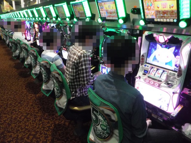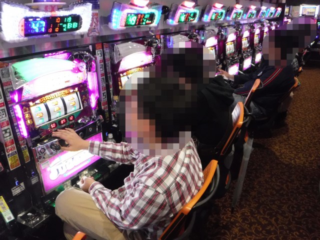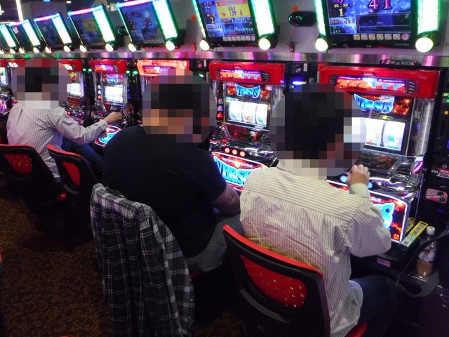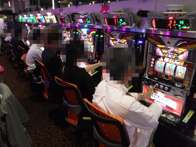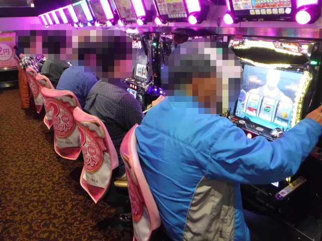 「マイジャグラーⅢ」や「アイムジャグラーEX-AE」などのジャグラーシリーズも人気が高い。明るい表情で遊技をおこなうプレイヤーも多く見られ、シマ全体が明るい雰囲気に包まれていた。
