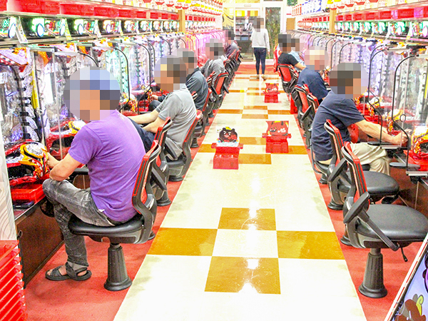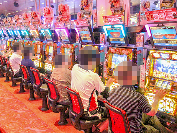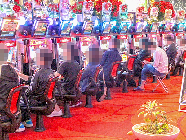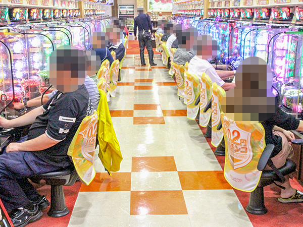 1円・0.2円パチンコはどちらも高稼働で、空き台を探すのがやっとという状況。特に0.2円パチンコにおける海物語シリーズが人気で、シマ全体がプレイヤーの笑顔であふれていた。