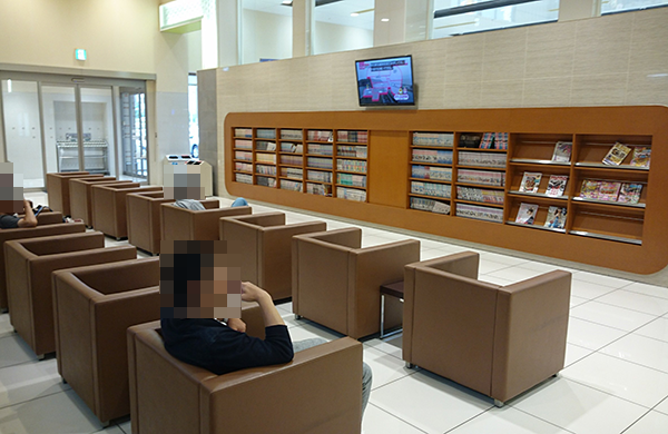 ソファーが設置されたレストスペースは広々としており、ゆったりとくつろげる印象を受けた。