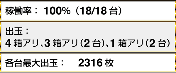 4箱以上の出玉を獲得しているプレイヤーもみられた。