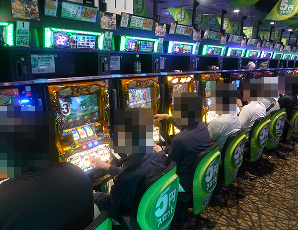 5円パチスロで遊技をはじめるプレイヤーも多く、早い段階から店内はにぎやかなムードとなっていた。