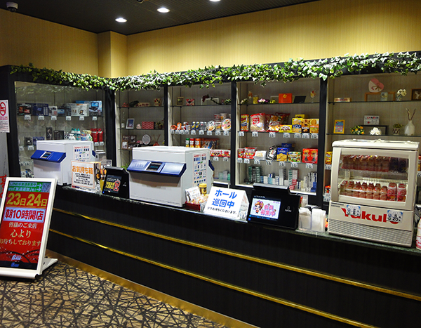 遊技スペースだけでなく、カウンターの周辺やトイレなどにも清掃が行き届いている「ガイア藤原スロット館」。キレイな環境は、ひとりのプレイヤーとしてみても魅力的に映った。