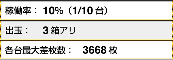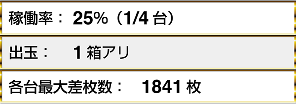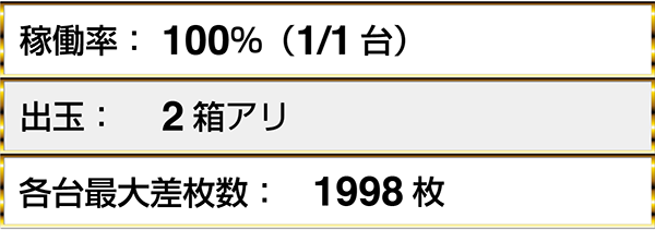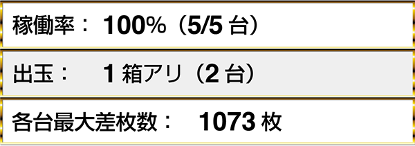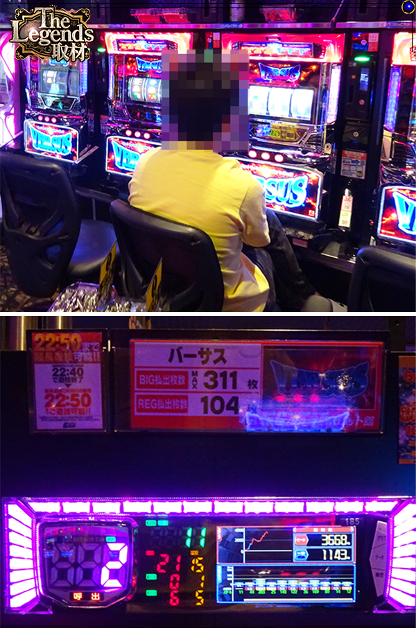 『バーサス』で3箱の出玉を獲得しているプレイヤーを目撃。最大差枚数は3000枚を超えていた。