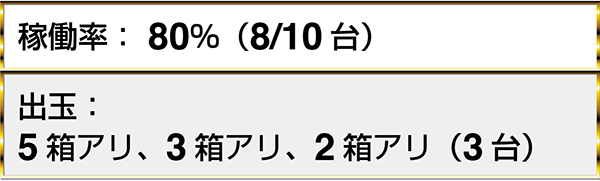 『アナザーゴッドハーデス-奪われたZEUSver.-』や『バジリスク~甲賀忍法帖~絆』でも、5箱を超える出玉を目撃している。