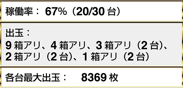 取材時にもっとも多かった獲得出玉は『バジリスク~甲賀忍法帖~絆』の8369枚。