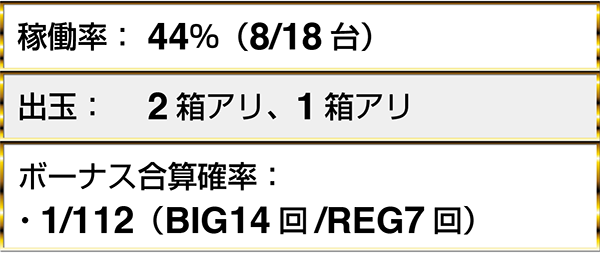 『アイムジャグラーEX AnniversaryEdition~プレミアムピンク~』では、ボーナス合算1/120以下のデータを確認している。