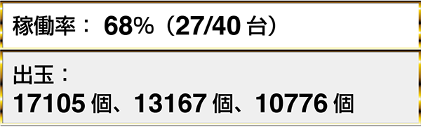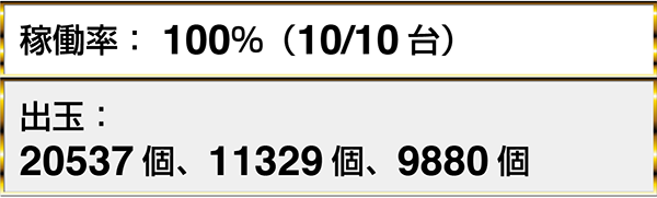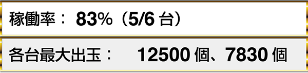 『CRぱちんこ冬のソナタ Remember』や『CRスーパー海物語IN沖縄4』、『CRぱちんこ冬のソナタ Final』など、6名以上が10000個を超える出玉を獲得していた。