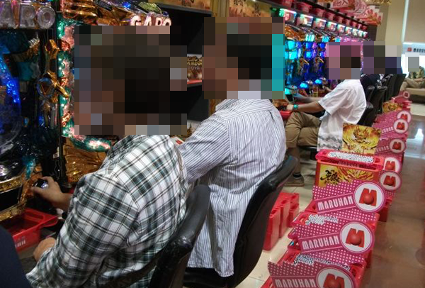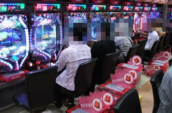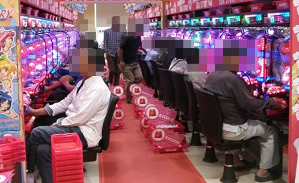 1円パチンコでも海物語シリーズは人気で、ほとんど空き台がないほどの賑わいをみせていた。