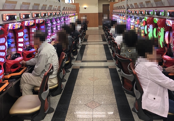 1円パチンコと2円パチンコの両方のシマが盛り上がっており、さまざまな機種でイキイキとした表情を確認している。